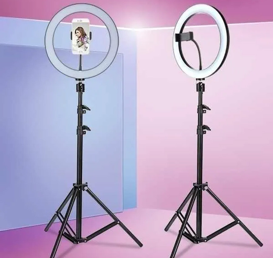 Massive 7-Foot (213cm) Reach: The heavy-duty metal tripod stand is fully adjustable, extending from a compact desktop size to a professional 7-foot height for standing shots or overhead angles.